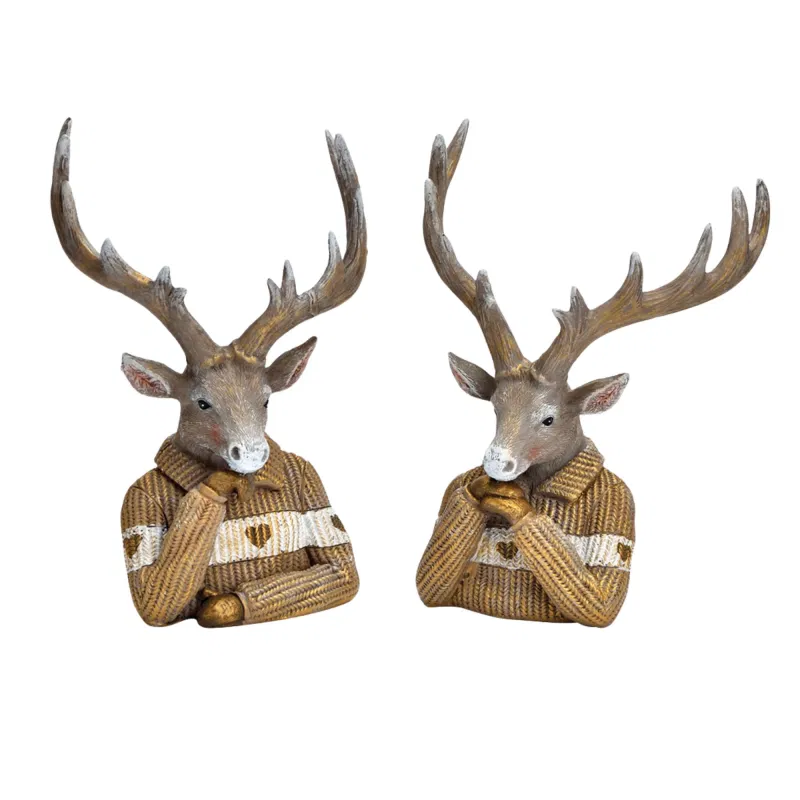 Decore sua casa com elegância rústica usando esta cabeça de veado decorativa em polímero, em tons marrom e dourado. Ideal para prateleiras, aparadores ou como peça central em ambientes rústicos ou modernos.
