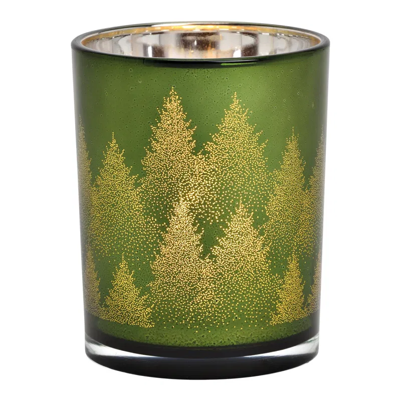 O porta-velas traz detalhes que remetem a uma floresta de inverno, ideal para decorar mesas, aparadores ou janelas. O vidro verde transmite sofisticação e cria um efeito luminoso delicado ao acender velas ou luzes LED.