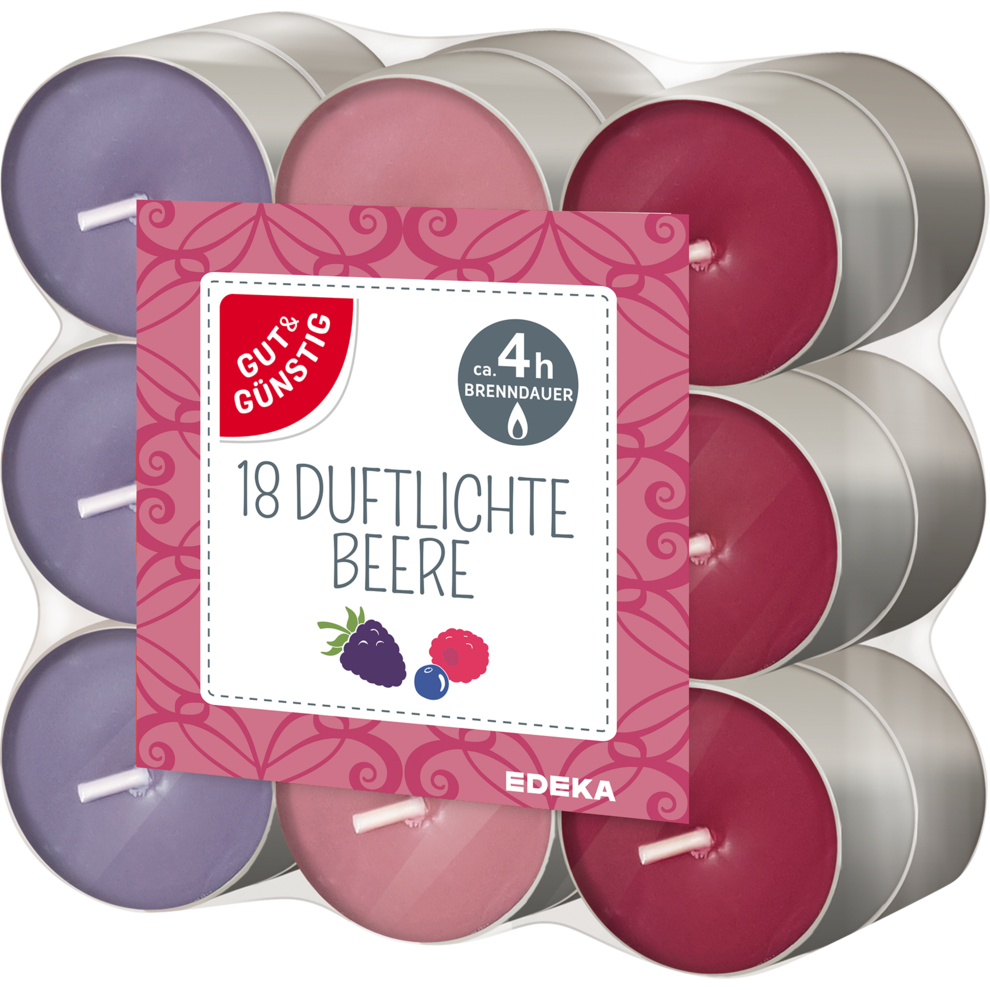 Conteúdo: Pacote com 18 velas aromáticas Duftlichte Beere, ideais para decorar, criar ambientes aconchegantes ou presentear alguém especial.