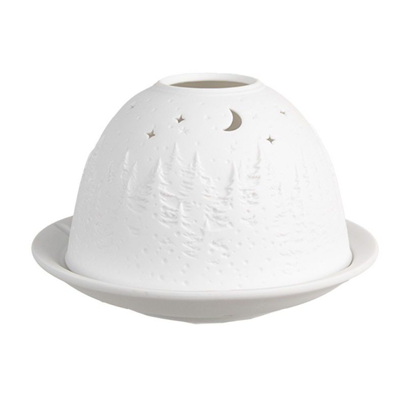 Com relevo detalhado de florestas sob o luar e delicados recortes de estrelas e lua, ele emite uma iluminação suave e envolvente.